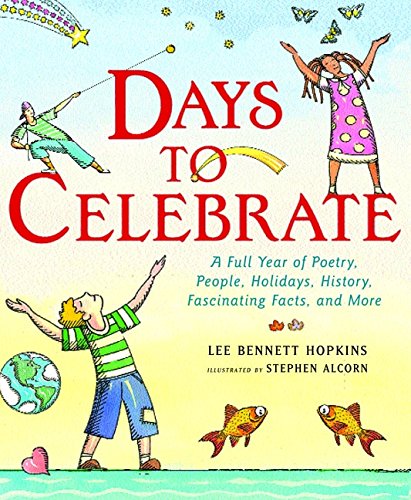 Lee Bennett Hopkins gathers poems and milestone facts for every occasion in Days to Celebrate: A Full Year of Poetry, People, Holidays, History, Fascinating Facts, and More, illus. by Stephen Alcorn. From Martin Luther King, Jr.'s brief biography, coupled with Nikki Grimes's poem, ""A Question for Martin"" in January, to a description of the little-known ""Night of the Radishes"" on December 23 (the tradition of carving sculptures from radishes in Oaxaca, Mexico), inspirationally paired with Karla Kuskin's ""Write about a radish./ Too many people write about the moon...,"" Hopkins presents an array of versatile verse, both classic and contemporary. Christina Rosetti, Carl Sandburg, Langston Hughes and Hopkins himself number among the other contributors. Alcorn's full-spread and spot illustrations with their fine ink line and watercolor wash, fluidly tie together poems old and new, airy and weighty. .