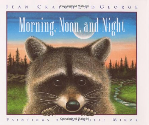 In precise, lyrical language George celebrates the daily activities of animals from dawn to dusk. When morning comes, ""the stork puts down his other foot./ The killdeer stretches her white-striped wings,/ and the cardinal sings,/ `Good morning, the sun. Cheer, Cheer.' "" Concrete details are cradled in language that evokes the turning of the earth from one day to the next, placing the animals' specific activities in a wider context: ""The earth has turned from dawn to light/ and work begins./ The lark feeds her nestlings./ The eagle goes hunting..../ and the bees buzz their message, `Work, Work.' "" Minor, previously paired with George for Arctic Son, offers splendid views of the countryside from Maine to the Pacific and back again. His paintings show bats in the Sonora Desert, bison in the Great Plains and Canadian geese in the Rocky Mountains. Not all the creatures George mentions fit into the serenely composed landscapes or appear in the occasional facing silhouettes; on the other hand, some pictured animals are not named in the text (endnotes, however, identify sites and species). The result is a more challenging offering than the usual nature book. Few children will be able to resist George's lullaby of animals or Minor's appealing cover portrait of a raccoon who seems to be just begging for a turn of the page. Ages 3-8. (May)