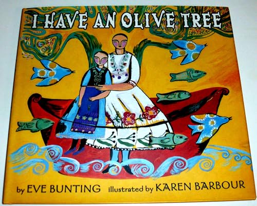 In this visually arresting picture book, Sophia ""receives"" an olive tree from her grandfather on her seventh birthday, one that still grows on his native Greek isle. Months later, her dying grandfather requests that Sophia and her mother travel from California to Greece to the olive tree to hang the beads that had belonged to Sophia's grandmother, as a remembrance. During the course of the trip, Sophia learns a great deal about her family's homeland. Bunting (Smoky Night) spins a quietly nostalgic tale that transports readers to the exotic setting with images of whitewashed houses ""sleeping in the sun"" and a sponge seller's wares ""stacked around him like great lumps of honeycomb."" In a visual homage to Greek culture, Barbour (Street Music) deftly adapts her folk-art style to incorporate elements of local art and architecture in everything from the color scheme--cobalt blue against white, lemon yellow and olive purple--to the characters' profiles, as stylized as those stamped on Greek coins. The townspeople wear traditional peasant dress; the legs of a table resemble Corinthian columns; and in a nod to Greek mythology, a sofa pillow is decorated with a winged horse. Barbour gives the tale a dramatic pause with a vertical spread showing the story's central image. The olive tree stands against a Van Gogh-esque landscape of flowing lines and swirling dabs of paint--and takes on a life of its own. Ages 4-8. (May)