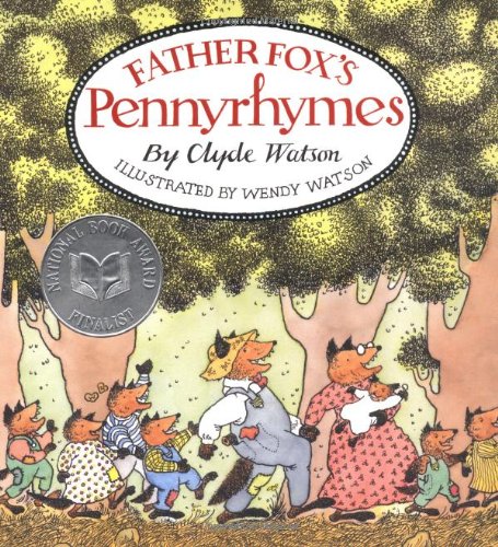 Father Fox's Pennyrhymes (1971) by Clyde Watson, illus. by Wendy Watson, with its delicately framed watercolor-and-ink vignettes of animal friends and families, brims with as much wit and charm as ever. (Aug.)
