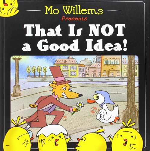 Willems, whose Goldilocks and the Three Dinosaurs also operated on a balance of threat and humor, models this suspenseful picture book after a silent movie. The sequence concerns a dastardly villain, played by a smirking fox in a top hat, and an ingenue, played by a coy duck in a blue headscarf. The fox invites the sweet-looking duck “for a stroll.” When she agrees, he asks, “Would you care to continue our walk into the deep, dark woods?” “Sounds fun!” she answers. Each time the duck accepts the fox’s invitations, an increasingly alarmed audience of six yellow peeps pops up to shout some version of the title: “That is not a good idea!” This being a Willems vehicle, a sudden twist reveals which character the peeps have been addressing all along. Cinematic conventions, like neatly framed white-on-black intertitles and gauzy iris-eye close-ups of the eyelash-batting heroine, join allusions to classics like “Henny Penny,” Rosie’s Walk, and perhaps even Mighty Mouse. Trust Willems to blend silents, animation, and comics for a wickedly droll poultry-in-peril yarn. Ages 4–8. Agent: Marcia Wernick, Wernick & Pratt. (Apr.)
