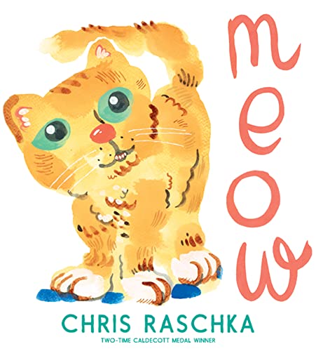 Raschka (The Blue Table) chronicles a search for intimacy from a cat’s point of view. In his distinctive watercolor style, he sculpts the feline’s furry contours in buttery gold, giving it green eyes, nodding whiskers, and huge paws. The cat sighs happily as a hand reaches down to ruffle its fur, then the attention ends as a red shoe walks away. “Meow?” the cat inquires, in the first of a string of utterances that vary the titular phrase. In an attempt to win back human attention, the cat leaps onto a table where a brown-skinned child is writing, landing squarely in the middle of the paper before being tossed back on the floor. Later, it’s the cat’s turn to take offense (“mm eee eee ow!”) as the child treads on its tail by accident; subsequent reconciliation takes time. These home-movie moments entertain, but there’s deeper significance, too, in the way they echo individuals’ attention-seeking and -avoiding behaviors in fits and starts. The delicate balancing act between loving, wanting to be loved, and yearning for independence resolves in a tender rom-com ending between child and cat. Ages 4–8. Agent: Brenda Bowen, Book Group. (May)