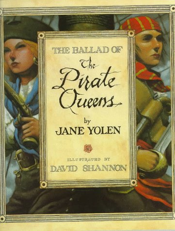 This rollicking ballad springs from an actual incident: captured in 1720 aboard the sloop Vanity when their dilatory mates ""below, did drink and sport,"" the ``pirate queens'' Anne Bonney and Mary Reade escaped hanging because they were pregnant. Author and artist imagine them later, roughhousing with their grandchildren, while their fellow pirates are fated to sail a ghost ship (""And silver the coins and silver the moon,/ Silver the waves on the top of the sea,/ When the ghostly ship comes sailing in,/ That gallant Vanity""). Yolen and Shannon sail a different course than the one they plotted for the darker and more tragic Encounter (1992). Yolen approaches this almost farcical incident in simple, occasionally rough verse. Ironic in their stateliness, Shannon's paintings-framed, captioned in a scrawled script and otherwise composed to evoke the 18th century-display a sly humor; Mary and Anne in profile ""pleading their bellies"" before a judge will elicit chuckles. Not for everyone, but offbeat and grimly amusing. Ages 4-12. Children's BOMC featured selection. (Apr.)