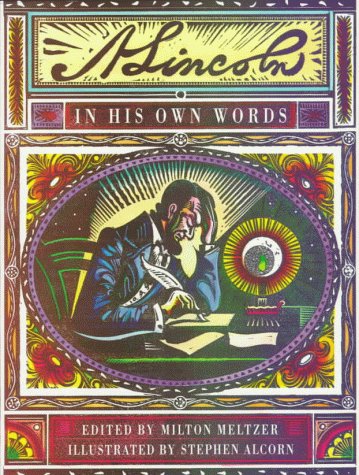 In his more than 30 books, historian Meltzer has introduced young readers to subjects ranging from crime in America to potatoes. Here, he traces Lincoln's life and the development of his ideas through his speeches, letters and essays. The bulk of each chapter is made up of lengthy quotes, loosely framed by Meltzer's sketchy commentary, which attempts to provide a historical background to the material while allowing Lincoln's words to speak for themselves. Though this minimalist approach does allow the president's language to take center stage, it is also a drawback: the collection certainly contains some gems, but Lincoln's characteristically dense phrasing and frequent twists of logic are likely to leave many readers more exhausted than enlightened. Breaking up the text are forceful and brooding linocuts by Alcorn ( Rembrandt's Beret ) depicting Lincoln and his contemporaries; the artist's haunting visions of slavery are a highlight of the book. Brief profiles of the president's contemporaries, a chronology and a bibliography are provided at the end of the book. Ages 12-up. (Sept.)