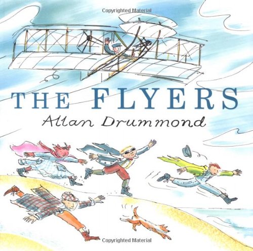 It's 1903, and five children in Kitty Hawk, N.C., have a front-row seat as the Wright Brothers prepare for the first sustained self-powered flight. The aviation pioneers' work inspires each child to muse on the way he or she would make use of the seemingly magical ability to soar into the sky. Josie dreams of flying across the ocean, Davey wants to attack his foes in a winged war machine, Jamie conjures up the spitting image of a commercial airliner, and so on. Drummond's (Liberty!) visual signature—a lighter-than-air ink line and puffs of translucent watercolor—perfectly match the subject matter. His plentiful vignettes and large-scale illustrations capture both the effervescence of the children's daydreams and the determined intensity of Wilbur and Orville's preparations—which, of course, represent the fulfillment of their own dreams. Drummond applies his light touch to the text as well, narrating the historic lift-off with the elemental enthusiasm of a child: "And then the Flyer moved down into the wind, its engine roared, and the whole machine took off! Orville was at the controls and it really flew!" At the same time, he succinctly encapsulates the brothers' achievements (e.g., the narrator points out that the Wrights need "to make a flying machine that they can take off in, land, control, and steer"). Among the many books issued to coincide with the 100th anniversary of the flight at Kitty Hawk, this one stands out for its ability to harness the imagination of youngest readers and make it soar. Ages 4-8. (Sept.)
