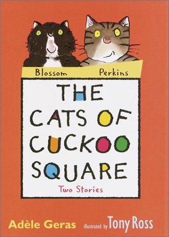 Peppy plots, comical line drawings and a large typeface neatly tailor Geras's (Troy) two tales to the needs of reluctant readers—especially those who find felines fetching. Told with plenty of Briticisms, each story affords a cat's-eye view of a household bordering the eponymous square. In the first and funnier entry, easygoing, pleasingly plump Blossom recounts a disastrous visit by Prissy, the six-year-old cousin of his eight-year-old owner, Miles. "She is a thorough nuisance," says the disgusted pet to his cat pals in Cuckoo Square—and right he is. Pesky Prissy falsely accuses Blossom of causing her to break a flowerpot, deliberately makes a dreadful mess of the bathroom and douses the dozing pet with icy water. When Miles and Blossom join forces to try to drive away the unwelcome houseguest, their campaign culminates in a madcap dinner-table scene in which the conniving cat hides a mouse in Prissy's mashed potatoes. A wise tabby cat named Perkins relays the second, less raucous but equally witty story, in which the narrator becomes famous when he inadvertently creates a work of art. Ross's (illustrator of the Amber Brown novels) animated sketches drolly partner the text. A companion volume, More Cats of Cuckoo Square, is in the works. Ages 6-9. (Oct.)