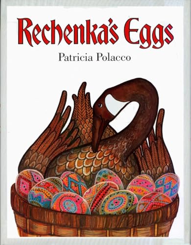 An old woman named Babushka always wins first prize in the Easter festival for her exquisitely painted Ukrainian eggs. When she finds a wounded goose outside her house, Babushka takes her in, cares for her until she is strong again, and names her Rechenka. The goose lays an egg each morning for the old woman, but as she begins to heal, she flies around, knocking over Babushka's jars of colored paints and breaking all her Easter eggs. Babushka is miserable, until Rechenka miraculously lays brilliantly colored eggs; the old woman wins first prize once more. Polacco's story is truly rewarding; Babushka's gift for coloring eggs comes across in a splendid array of folkloric patterns, minute detail and batik-like paintings. Babushka is given credit, but the artistry is Polacco's. Intricate designs and opulent colors shade every page, right down to the onion-shaped domes and peasants' festival garments. Ages 4-8. (April)