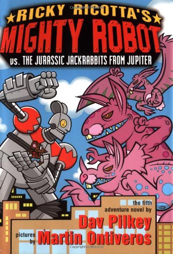 Ricky's birthday excursion takes an unexpected turn as he tries to prevent General Jackrabbit from taking over Earth in Ricky Ricotta's Mighty Robot vs. the Jurassic Jackrabbits from Jupiter by Dav Pilkey, illus. by Martin Ontiveros.