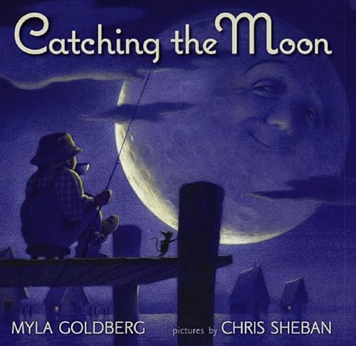) enchanting illustrations in this tale of friendship between a Fisherwoman and the Man in the Moon are not to be missed. The omniscient narrator begins with a page-turning sentence: "Hardly anyone noticed when the Fisherwoman started fishing at night," and the tale develops like a beguiling dream. The moon, intrigued with the Fisherwoman, puts on "his traveling hat" and sunglasses disguise to visit her at home. They have tea together—he brings a sea cucumber sandwich, and another time a moon pie. One night, the Fisherwoman tells her visitor of her plan to reel in the moon and prevent the tides from eroding the village's fishing shacks ("Her bright-eyed guest was very impressed, but he did not share her fondness for fishing hooks"). The gentle humor in both text and images softens the environmental theme. Sheban's palette of cobalt blue and chestnut brown allow him to highlight the radiant moonlight. The round-faced moon's phosphorescent footprints glow like yellow coins on the pier, and he sends the woman a gift that helps her achieve her lofty goal. Like the artwork, Goldberg's text ripples with mystery and singular images: "Now everyone knows that on one night each month, there is no moon: From Iowa to India, the sky is dark, save for its starlight freckles." This elegant book is as captivating as moonlight shimmering on a quiet sea. Ages 4-8. (May)