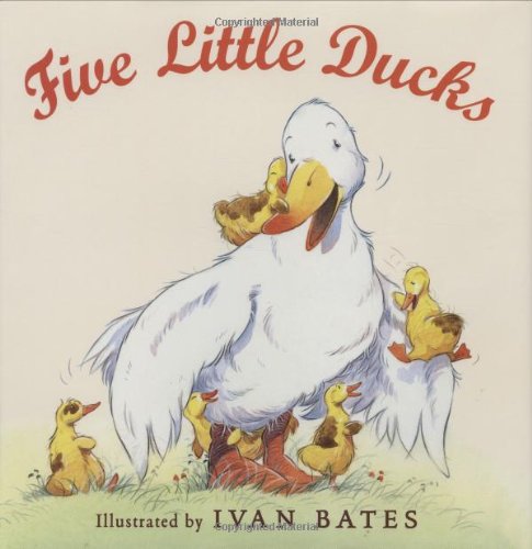). What exactly happens to the disappearing ducklings when Mother duck tries to call her brood back to her side with a "Quack, quack, quack"? Bates imagines that each feathery waddler meets up with a friendly member of another species, and is inspired to acquire a present for mom that reflects the new pal's distinctive habitat. The first duck meets a smiling beaver, and snags a worm from its stream; the second plucks a flower from a contented cow's meadow, while a third duckling sees a crab and discovers a shell on the shore. With the song's lyrics as the only text, the book offers readers plenty of opportunity to imagine their own dialogue. Bates renders the ducks' benevolent encounters with customary effortlessness. He strikes just the right balance between realism and anthropomorphism, and finds a sweet-natured humor in contrasting the diminutive ducks with their much bigger acquaintances. The wrap-up finds all the ducklings "waddling back," bearing gifts for Mother that they've found all by themselves—a nice message that a little independence is not such a bad thing. Ages 3-5. (Feb.)