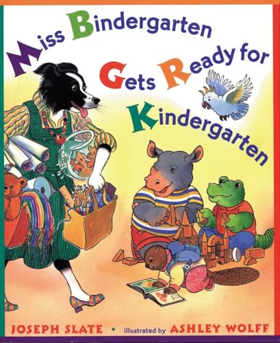 Any child made anxious by the first day of kindergarten should find great comfort in this book's two parallel stories: 26 young animals--from an alligator named Adam to a zebra named Zach--get ready for their first day of school, while a teacher named Miss Bindergarten is hard at work preparing herself and her classroom for their arrival. Wolff and Slate (previously teamed in Who Is Coming to Our House?) boost the confidence of their audience by showing that Miss Bindergarten, a gentle-looking black-and-white dog in a green dress, is slightly more harried in her preparations than her students. Except for a genuinely reluctant iguana named Ian, who is dragged crying from the door of his house by his mother, the kindergarteners appear not only self-reliant but eager. Slate's text has a comforting, familiar rhythm (""Brenda Heath brushes her teeth/ Christopher Beaker finds his sneaker""), while Wolff's richly colored, busy illustrations display a keen and sympathetic eye for children's dress and behavior. The book concludes with a winning set of class portraits, each of Miss Bindergarten's pupils (except poor Ian) grinning into the ""camera,"" the picture of self-assurance. Ages 3-6. (Sept.)