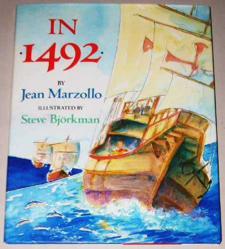 Thanks to the popular singsong verse ``In fourteen hundred ninety-two / Columbus sailed the ocean blue,'' the year in which Christopher Columbus weighed anchor may be history's best remembered date. Marzollo ( Pretend You're a Cat ) has expanded the ditty to include some basic details about the man and his voyage--``He sailed by night; he sailed by day; / He used the stars to find his way. / A compass also helped him know / How to find the way to go.'' The tale is surprisingly clear and complete, despite the brief and simple text. And it even manages to be ``correct,'' both politically (`` `Indians! Indians!' Columbus cried; / His heart was filled with joyful pride. / But ``India'' the land was not; / It was the Bahamas, and it was hot'') and historically (``The first American? No, not quite. / But Columbus was brave, and he was bright''). Only the names of Columbus's three ships--musical themselves--are missing. Bjorkman's lighthearted illustrations are top-notch--his oceanscapes are suitably sweeping, his ships imposing, his characters endearing in their naivete. (Some of his watercolors seem to pay homage to those of Edward Ardizzone.) This engrossing introduction to history for young children is a standout in the spate of books being produced to honor the 500th anniversary of the landmark voyage. Ages 4-8. (Oct.)