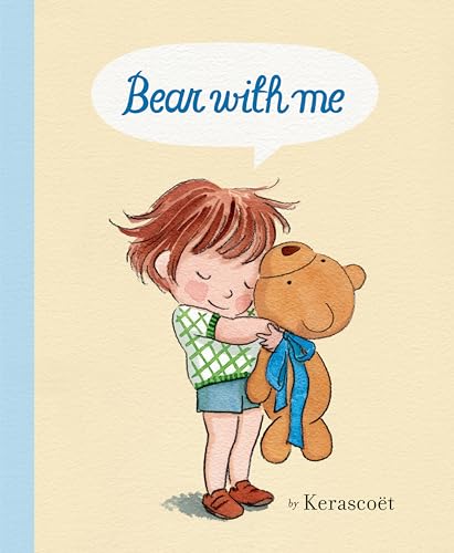 In this mostly wordless tale, delicately drafted ink-and-watercolor vignettes alternate with full spreads as married team Kerascoët (I Walk with Vanessa) portray the tight bond between a child and a stuffed bear given to them as an infant. In early pages, the toddler, shown with pale skin and red hair, keeps the bear company in an armchair, dances with it, and drags it lovingly through the garden, its bright blue necktie becoming the worse for wear. Now the bear needs a trip through the washing machine—the child’s tearful yowl and the hand-lettered words “Bear with me!” convey the pain of separation. Time passes. On the first day of school, the child tries stuffing the bear into their schoolbag and shirt, but a parent’s waggling finger delivers the message: the bear stays home. Kerascoët shows the protagonist finding coping strategies at school