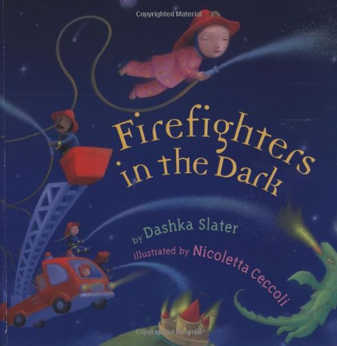 As she drifts off to sleep, a girl hears the sirens emerging from the fire station near her house. "I know where they are going," she tells herself, launching into three fantasies about first responders King, Penelope, Almondine and Bruce—as she imagines their names to be—and their unusual missions. The team saves 15 baby princesses trapped in a burning castle when a fire-breathing dragon accidentally blows too hard to cool off his dinner; they speed "all the way [to] Mexico" to save a lady gardener whose tongue shoots sparks when she nibbles on a hot pepper; and they dispatch their aerial ladder "past the moon and Mars and Venus" to rescue a boy whose bed-bouncing has launched him to Pluto. Although the goings-on walk a thin line between fantasy and nightmare, the calm, confident tone of the young narrator continually assures readers that she's firmly in control. Slater and Ceccoli are ideally paired, with the incantatory rhythms of the prose mirroring the velvety surfaces and Zen-like vibe of the acrylic and pastel paintings. The result is a book that's both engrossing and lulling—a wonderfully offbeat choice for bedtime. Ages 4-8.