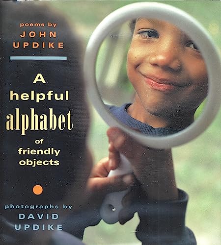 In addition to illustrious name of Updike, this extraordinary alphabet book offers numerous rewards-poems that are by turns thoughtful and lively; crisp photographs that seem both familiar and new; and a book design so fresh and appealing as to ensure repeat readings. Each poem and photograph describes ordinary things-apple, cat, eggs, shoes and socks-in language and images playfully accessible to preschoolers. ``At evening/ when the grass is dewy,'' reads the poem for ``R,'' ``out hops the rabbit/ feeling chewy.'' For the letter H, a photo shows a boy crouched beside a gleaming chrome hubcap in which his image is reflected ``stretched sideways like gum.'' Clever design elements begin with bright endpapers that repeat the interior photographs and letters; within, the typeface in ``D'' changes with each word comparing dogs and cats (a dog is ``jumpier,'' its tail is ``thumpier,'' etc.) in a kind of visual onomatopoeia; the words of the K-is-for-knot poem loop and meander to mimic ``the thing that happens to string''; the photos appear in ovals and circles as well as standard squares and rectangles. This book is an introduction not only to letters but to looking at people and objects ``as if you were/ inside them for a ride.'' Ages 3-8. (Aug.)