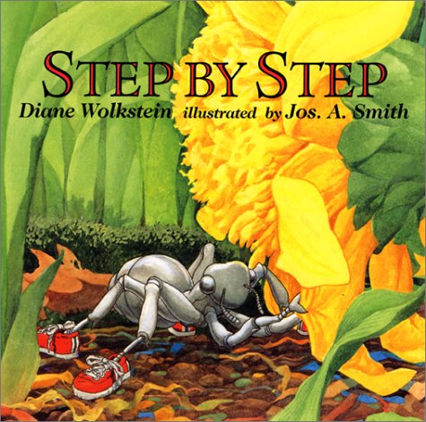 Over a stone, across a leaf, under a branch--step by step, a red-sneakered ant wends her way to meet her friend the grasshopper. Together, the two enjoy an outing, then the ant travels home again, step by step, arriving just before dark. Although the story line is slight and the pair's adventures practically nonexistent, Wolkstein's pacing is expert. Here, repetition of the phrase ``step by step'' propels the tale and sets the stage for a rhythmic, reassuring read-aloud. Smith's larger-than-life illustrations provide an ant's-eye view of the world; solid attention to detail and gentle anthropomorphization of the ant and her friend make this, if not a show-stopper, decidedly reader-friendly. Ages 3-up. (Apr.)