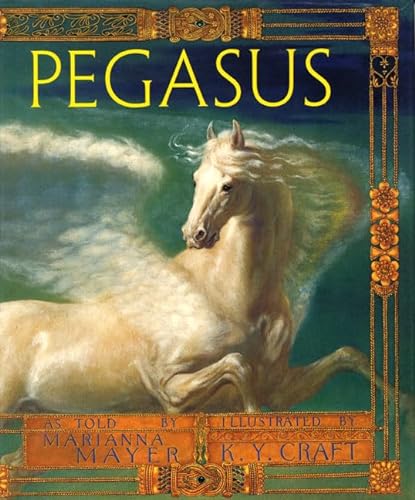 Though many young Disney fans now know Pegasus as the pet-like winged steed of Hercules, Mayer (Turandot) will broaden this perception by introducing Bellerophon, another mythical hero who teamed up with the magnificent horse. Bellerophon, the brave and handsome son of the king of Corinth, inspired the jealousy of many Greeks. One such enemy devises a plan that pits Bellerophon against the horrible demon-beast Chimera. Bellerophon's only hope of defeating the monster is to gain the trust and help of Pegasus. Mayer delves into works by Robert Graves and Erich Neumann for her classical-toned retelling. Her version contains the requisite cast of feisty gods and human royalty and all the intrigue and clearly drawn conflict that make mythology so compelling. Craft's (Cupid and Psyche) detailed, Italianate illustrations are similarly grand in scope. Each of her darkly shadowed paintings, featuring the rolling Greek countryside and figures dressed in flowing tunics, is framed in gold, like a museum piece. Several sweeping, dramatic scenes capture the colossal action of the tale. This bold adventure will likely encourage readers to investigate other myths and mythic heroes. Ages 5-up. (Apr.)