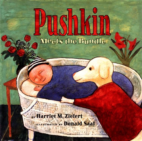 Jealousy of a new baby is the well-trod theme of this fairly predictable story, which depends on the art for its imaginative flourishes. The narrator, Pushkin the dog, enjoys his home life with Kate and Michael until the arrival of a baby consumes all of their attention. Saaf, previously paired with Ziefert for Wee G., cleverly amplifies Pushkin's role as a stand-in for an older sibling. His pert, angular gouaches show Pushkin as a cross between a dog and a doted-upon child: he sleeps in a four-poster bed, and pictures of him adorn the walls of the house. Pushkin does handstands and sometimes walks on two legs, and when Ziefert mentions that Pushkin ""plays ball"" with Michael, Saaf shows him swinging a baseball bat. Even with the playful art, however, the story never breaks free of its familiar formula. In the end, Pushkin, imbued with plenty of personality, tries to cajole a bawling baby by performing all of his tricks; the infant laughs, and Pushkin decides that he ""might just get to like this baby after all."" For a more tender treatment of this theme, see Rosemary Wells and Susan Jeffers's McDuff and the Baby; for a more vibrant exploration, Kevin Henkes's Julius, the Baby of the World is still top dog. Ages 3-7. (Apr.)