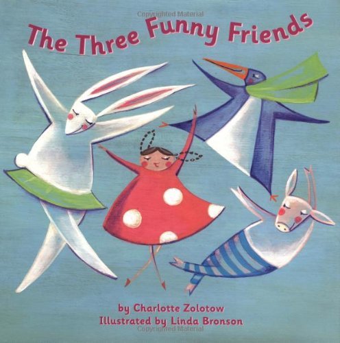 In The Three Funny Friends by Charlotte Zolotow, originally published in 1961, but with new artwork by Linda Bronson, Guy-guy, Bickerina and Mr. Dobie do all sorts of things the girl heroine would never do, but her parents can't see any of them at all. Bronson's geometric forms and swirling lines convey the antics of the girl's imaginary animal friends in humorous artwork that conveys the girl's gently rebellious nature.