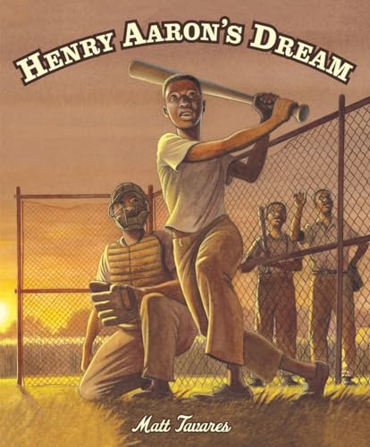 Tavares's (Lady Liberty) engaging biography focuses on Aaron's early baseball-playing years-before he was nicknamed Hank as a major leaguer. Growing up in Mobile, Ala., in the 1940s, he honed his skills at a "colored only" ballpark and dreamed of playing in the big leagues, despite his father's admonition, "Ain't no colored ballplayers." The author underscores the inspiration Jackie Robinson provided Aaron as the younger player held on to his dream despite setbacks on the field and racial prejudice. Using near identical language, the lyrical yet hard-hitting narrative describes the players' parallel experiences ("Some white fans called Henry 'nigger.' Some even sent him letters, threatening to kill him if he kept playing"). Close-up portraits of Aaron on and off the field dominate Tavares's watercolor, ink, and pencil art. In the book's most rewarding-and exciting-scene, Aaron, a rookie for the Milwaukee Braves, finally shares the field with his hero during an exhibition game against the Brooklyn Dodgers, narrowly outrunning a throw from Robinson. A concluding note, with stats, tracks Aaron's later career. Ages 8-10. (Jan.)
