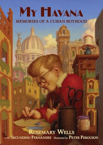 After hearing a radio interview with Fernandez, an émigré architect, Wells tracked him down and asked to collaborate on a story about his childhood, which they deliver in this short novel that brims with feeling. From a young age, Secundino, called "Dino," filled sketchpads with renderings of Havana's architecture. Until 1954, when he moves to Spain temporarily to help an ailing family member, Dino's "world is sweet" ("Havana is like another mother to me, dressed in beautiful colors with sparkling jewelry"). This sentimentality is balanced by the loss Dino feels when Castro takes over and his family leaves for good. His new home in Manhattan is initially unwelcoming ("When you fall and scrape your skin on pavement, that is how New York feels against the eye," he recalls). The solution to his homesickness is to build an elaborate model of the Cuban capital on his bedroom floor. Ferguson's illustrations are infused with a burnished ochre light, well suited to Dino's warm memories. The ending, in which Dino and a new friend ascend a fairground ride at Coney Island and spot distant land—could that be Cuba?—is supremely satisfying. Ages 7–10. (Aug.)