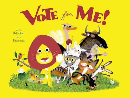 A supremely confident lion always runs unopposed for president; one suspects that his postvote parties, where the animals get “as much cake and strawberry-coconut juice as they wanted,” play a part in his success. But when a mouse quite reasonably asks, “What’s the point of elections if we can’t choose between several candidates?” she triggers a deluge of candidacies with self-interested platforms. The cat promises that “you will always have fresh mice to eat”; the fox pleads to “end all borders” while eyeing the fence around the chicken coop. The vote is split so many ways that every candidate but the lion wins. But instead of coalition building, mayhem ensues: the pictures, which up to this point have resembled witty, vintage nursery murals, devolve into a scary, scorched no-man’s land where it’s eat or be eaten. Amid “all the chaos and unhappiness,” the lion offers everyone the chance to “start over” by voting for him—and he wins yet again, unanimously. There are certainly more rousing endorsements of democracy available to readers, but Baltscheit and Boutavant (the Ariol series) successfully inject realpolitik into the election picture book genre. Ages 4–8. [em](Apr.)