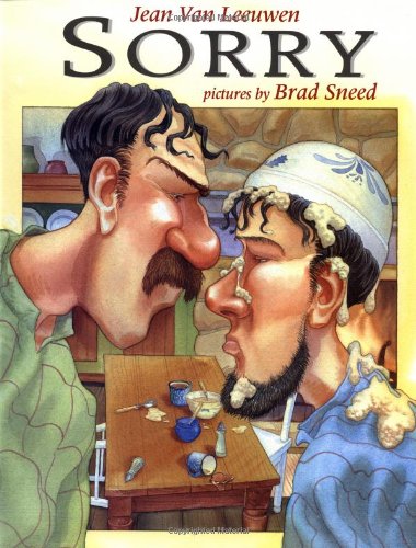 Two angry men appear on the cover of this cautionary tale about holding a grudge. One glares. The other sullenly wears an overturned bowl of oatmeal on his head. These are Ebenezer and Obadiah, brothers who share a farm. In happy times, "Ebenezer cooked. Obadiah cleaned.... And in the evenings they both sat on the porch playing tunes—Ebenezer on his fiddle, Obadiah on his mouth organ." This comfortable routine continues until the day Obadiah mutters about "lumps" in Ebenezer's oatmeal, and Ebenezer dumps the breakfast on his sibling. Afterward, neither will apologize. Van Leeuwen (