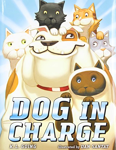 A beleaguered bulldog tries herding cats in this high-anxiety comedy, Going’s (Fat Kid Rules the World) first picture book. In panels that open the tale, readers see the amiable Dog sitting, staying, and dancing on command—in a pink tutu, no less. Dog revels in hugs from his young owner, who instructs him to cat-sit while the family goes to the store. He benevolently eyes the five cats, and a thought-bubble shares his optimism: “First we will sit and then we will stay.” The cats have other plans, though, swiftly dispersing to wreak havoc on the kitchen counters and in the sooty fireplace (“ ‘Out,’ barked Dog. Swish! went the ashes”). Santat’s (Tom’s Tweet) overlapping comics panels suggest frenetic activity; spreads picture Dog running from room to room, and the repeated words “No cat. Or was there?” encourage readers to find pointy ears under a blanket or a tail protruding from a clothes hamper. With skillful use of repetition, an agreeable and entertaining animal cast, and a tidy ending of the best kind, dog people and cat people alike have reason to approve. Ages 3–8. (May)