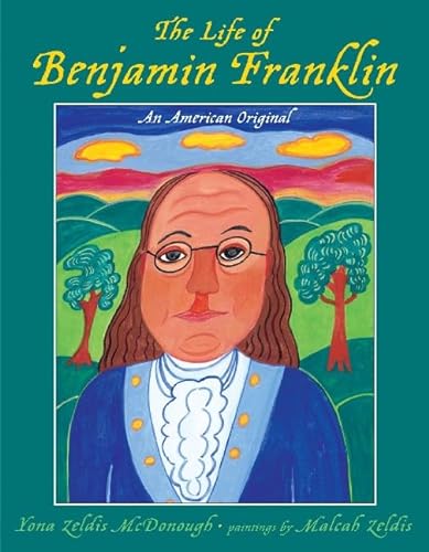 This mother-daughter team (Anne Frank) shapes a dense, well-balanced portrait of Franklin, illuminating his extensive achievements as inventor, businessman, scientist, politician, statesman and ambassador. The picture-book biography opens with a description of Franklin's famous experiment with a kite, key and lightning, then flashes back to his early years. Referring to her subject as ""Ben,"" McDonough's informal, anecdotal narrative includes some youngster-pleasing nuggets about Franklin's childhood. For instance, after the boy wrote a poem at age seven, his parents sent him to school, an opportunity not given to every child; and his love of swimming inspired his very first invention, wooden fins for his hands and feet that enabled him to move faster in the water. The author provides frequent insight into Ben's personality and beliefs, among them a patriotism so fierce that he never forgave his son for siding with the British during the Revolution. Rendered in gouache and framed by boldly hued borders, Zeldis's quirky, primitive folk art features a vivid palette dominated by red, blue and gold. A concluding timeline of Franklin's life, and partial list of his inventions plus a sampling of sayings he published in Poor Richard's Almanack round out this volume, a nice complement to Gene Barretta's Now & Ben (reviewed Jan. 23)-which focuses more closely on Franklin as inventor. Ages 5-9.