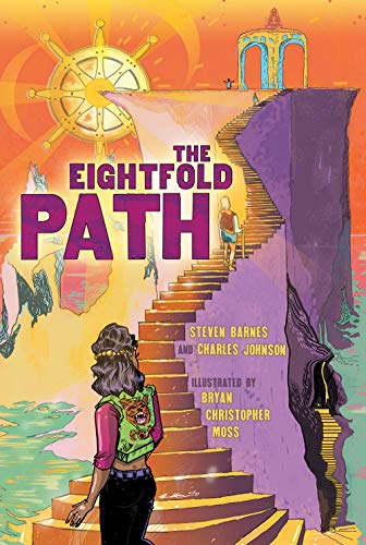 Barnes (Lion’s Blood) and Johnson (Middle Passage) team up with artist Moss (The Experiment Known as Rose Marie Hernandez Willamson) for a story collection with cosmic ambitions hampered by some earthly flaws. Eight spiritual pilgrims, called to the mountains by the guru Acharya Bodhi, shelter together in a cave and learn that their purpose is to “take the next important step in your evolution.” In the meantime, they swap stories theoretically themed around the eight spokes of Buddhist enlightenment. These include an EC-style horror comic set on a Southern plantation, a psychedelic romance in the far future, a postapocalyptic story in which Black people are immune to a zombie plague, and an inner-city drama featuring kung fu. The experimental narrative aspires to teach the principles of Buddhism, including with morality, self-improvement, and the question, “What is a man?” through Afrofuturist science fiction and Black-centered fantasy. But murky moral messages are scattered in choppy scenes. Moss’s art, with roughly blocked figures and sketchy backgrounds, shows promise but isn’t up to the challenge of the script’s sweeping variety of fantastical settings and situations. Despite the potential, the ambitious concepts here get lost in search of a story. Agent: Eleanor Wood, Spectrum Literary Agency, Anne Borchardt, Georges Borchardt, Inc. (Feb.)
