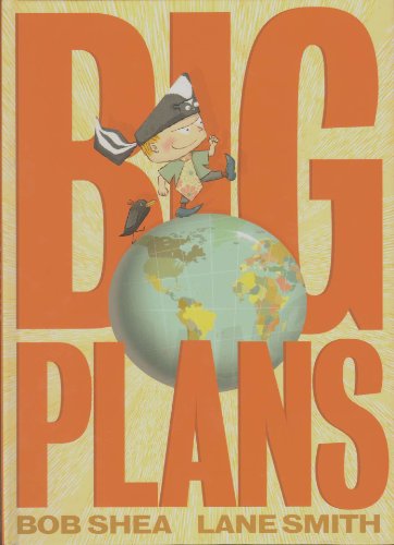 Trailed by his yes-man sidekick (a mynah bird), a boy trumpets his ambitiousness. “I got big plans! Big plans, I say!” he shouts repeatedly, in display type that dominates the pages (no mean feat, considering the hyperthyroid trim size). Despite his brashness, the boy is stuck in a time-out corner (the reason for his punishment is not given). Yet this temporary condition does not crush the boy’s imagination. He envisions himself marching into Manhattan and reading the riot act to lookalike bald men at a board meeting (“You! Take a memo!... You! Ready my helicopter!”). He sees himself elbowing out the mayor and then the president. Finally, he anticipates rocketing to the moon to spell out his “big plans” slogan in gigantic rocks. Shea, whose