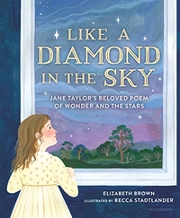Butterflies flutter through this exploration of Emily Dickinson’s singular spirit, a visual leitmotif that mirrors her slantwise sensibility. Berne’s finely chosen words echo Dickinson’s poetic proclivities: “In a little room—in the dark before dawn—/ a baby girl was born./ Her parents celebrated the holiday/ they called Emily.” She paints a picture of a curious child who, as she grows, finds her own way to make sense of a world holding both trouble and joy. “Everywhere she looked,/ she was told to obey without asking,/ to believe without knowing why./ So she began to put her faith in/ what she could see and understand.” Lines from Dickinson’s poems punctuate Berne’s text, reflecting themes of nature, wonder, and joy. Stadtlander’s modern folkloric gouache and watercolor illustrations seamlessly merge realism and fantasy, capturing fine details such as floral-sprigged fabrics and rendering whimsical scenes like a miniature Emily astride a grasshopper in a sunset sky. Ages 5–8. [em](Feb.)