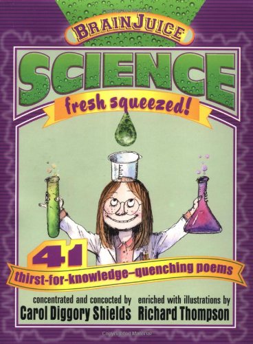 For the scientifically and poetically inclined, the 41 poems in Brain Juice: Science, Fresh Squeezed! by Carol Diggory Shields, illus. by Richard Thompson, distill scientific facts into simple formulas via clever rhymes and mnemonics. In the tragic romance, ""Chemical Reaction,"" Shields writes, ""He was acid, she was alkaline./ He wasn't her type, but he thought she looked fine."" Political cartoonist Thompson's exuberant drawings combine with the text to supersaturate the pages with wit and levity.