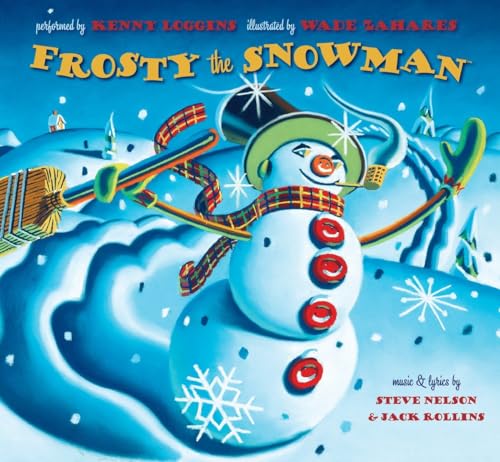 “Thumpety thump thump,/ Thumpety thump thump,” readers watch the famous snowman come to life and glide over snow-covered hills and through a busy town square in Zahares’s smudgy, folk art–flavored artwork. Children joyfully outfit their frozen friend with the requisite button nose, corncob pipe and magic hat, in scenes whose icy blue snowscapes are punctuated with bright reds, yellows, and greens before Frosty takes his tear-filled leave into a glowing orange sunset. An accompanying CD features musician Kenny Loggins performing the title track as well as two original, non-holiday songs. Ages 4–up. (Nov.)