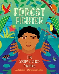 In 28 individually titled spreads, this engaging narrative nonfiction picture book relays the life of Kenyan preservationist Wangari Maathai (1940–2011), “the first woman to get a PhD in East Africa,” the founder of the Green Belt Movement, and a Nobel Peace Prize winner who fought for justice. Tracing Maathai’s life, including her childhood and education, Hooks uses elegant yet accessible prose: “They became the roots of the movement and their efforts its leaves.” Carpentier’s saturated geometric illustrations emphasize the bold impact of Maathai’s actions, including her work empowering rural women to plant millions of trees and help rebuild Kenya’s infrastructure, and peaceful protesting that halted construction of a skyscraper in Nairobi’s largest city park. A well-paced profile of an inspiring environmentalist who built a movement. Front matter includes info about Maathai’s inspiration; back matter includes a glossary and an index. Ages 7–up. [em](May)
