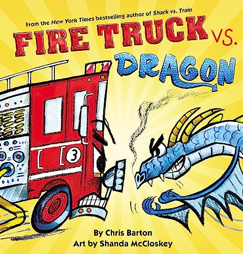 This time, the joke is on readers: unlike the rivals in Shark vs. Train, Fire Truck and Dragon are besties (“We get along great!” says Fire Truck. “Why wouldn’t we?”). Each time there’s a possible confrontation involving Dragon’s incendiary talents and Fire Truck’s capacity to extinguish them, the result is comically companionable. Looking forward to what will happen when the two show up at the same cookout or barbecue? Dragon proudly brings homemade free-range potato salad, and a beaming Fire Truck provides “my famous firehouse beans.” “Is there something more they want to see from us? Something in particular?” Dragon innocently asks after yet another potential showdown ends on a benevolent note. They finally agree to “Facing off!!” (“Who will win?” says Dragon tantalizingly), which results in a staring contest. “I thought that... would be a crowd-pleaser,” says Dragon, puzzled. Frustrated expectations have seldom been so funny; Barton’s misdirections are beautifully timed, and McCloskey’s digitally enhanced pencil-and-watercolor drawings are bright and exuberant. And yes, fire is finally breathed and water is spurted: that’s how these two multifaceted pals say goodbye. Ages 4–8. [em]Author’s agent: Erin Murphy, Erin Murphy Literary Agency. Illustrator’s agent: Erica Rand Silverman, Stimola Literary Studio. (Mar.) [/em]