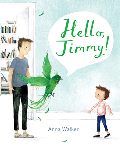 Jack and his father have worked out a quiet, if melancholy, routine during Jack’s visits: “They made tacos. And milkshakes, too. Sometimes they talked. And sometimes they didn’t.” But when Dad unexpectedly adopts Jimmy, a loud, flamboyantly feathered parrot, Jack’s world is turned upside down—and not, readers will suspect, for the first time. Dad perks up considerably in Jimmy’s presence; the parrot is clever and funny (he mischievously swipes Jack’s toothbrush and underwear), and guests love his antics. “He can walk, he can talk,” Dad says, “He’s amazing!” But Jack, wearing large headphones, presumably to block out the noisy bird, “wished he was amazing too.” A harrowing parrot-themed nightmare—an almost luridly hued scene that breaks with the spare gouache and pencil domestics that precede and follow it—prompts Jimmy’s escape. But the incident proves to be the moment of truth that both son and father need, movingly and quietly reaffirming their connection. Walker (Lottie & Walter) crafts an extraordinarily imagined book, profound in its understanding of the heart, and featuring a feathered Moby-Dick at its center—a figure capable of embodying and reflecting layers of emotional significance and meaning. Ages 4–7. [em]Agent: Stephen Barr, Writers House. (Feb.)