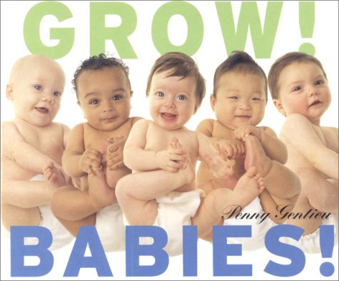 Board books abound for babies and toddlers. The sleek design and artful photography that made Penny Gentieu's Baby! Talk and Wow! Babies! just right for this sturdy format also applies to her record of baby's first year, Grow! Babies! Key monthly milestones (smiling, rolling over, crawling, etc.) are marked throughout.