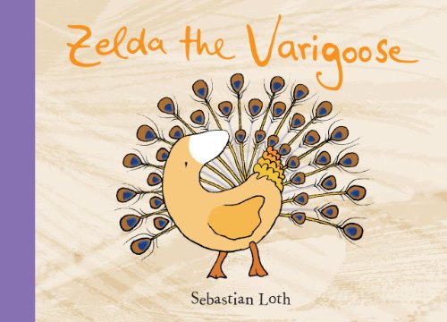 Zelda, the yellow goose who felt the loss of her beloved turtle friend in Remembering Crystal (2010), is the subject of this clever interactive book first published in Switzerland. Transparent acetate pages illustrated with the physical features of a snail, bee, chameleon, and others, are transposed onto Zelda’s simple, sloping shape, which appears on the right-hand pages. Pensive phrases describe the resulting goose hybrids, such as Goosesquid, Ladybug Goose, and Goosephant: “If I caught cold, then I suppose/ I’d need an hour to blow my nose.” Loth’s well-designed gem reads like a kind of poetic interlude about this endearing character. Ages 4–up. (June)