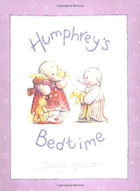 While Humphrey, from Humphrey's Corner, gets ready for bed, his big sister, Lottie, pulls rank: ""I am allowed to stay up very, very, late,... because I am the biggest."" Besides, she must put her own babies (a collection of stuffed animals) to bed. Finally, Daddy swoops up his sleepy girl in Humphrey's Bedtime by Sally Hunter. Sunset-colored pastels and cozy hand-lettered text create just the right mood for winding down the day. ( Oct.)