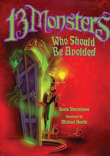 Adults and savvy young readers may recognize the influence of Seuss in this collection of poems. While Shortsleeve's rhymes and rhythmic scan are less sure than the master's, he rounds up a far-out clan of creatures that go bump in the night (and day) in this baker's dozen. His monsters range from everyday bogeymen such as the thieving Three-toed Albanian Snoring Sock Bat (""if in your dresser a nest is constructed,/ Keep count of your stockings so none are abducted"") and the Whichwayawawa who can't decide on his destination at the ticket counter (""This scene can go on for a very long time,/ Making life rather grim for the next one in line""), to more alien beings (or are they?) like the Thumple-Haired Land Ants (""found only on Mars"") who grab the whole family, ""Fly down to Earth and rent an RV,/ Pull up at your door, and demand to have tea."" First-timer Austin's illustrations have a surreal edginess, both in the style, typified by elongated shapes, skewed angles and contorted shadows, and in the intriguingly irradiated palette in shades of vermilion, Day-Glo yellow and black-light green (his three-headed ""Ralph, Ed, and Joe"" sporting a ""Kiss the Cook"" apron is a highlight). Despite the fact that readers are set up for a scare, silliness, rather than spookiness, prevails; the all-out goofiness may be a bit forced at times, but young readers will likely be entertained. Ages 6-10. (Sept.) FYI: Children can enter a nationwide contest by submitting a drawing of a monster reading a book; the winning illustration will be printed on a special bookmark, and the winner will receive a library of Peachtree titles, along with an autographed copy of 13 Monsters.