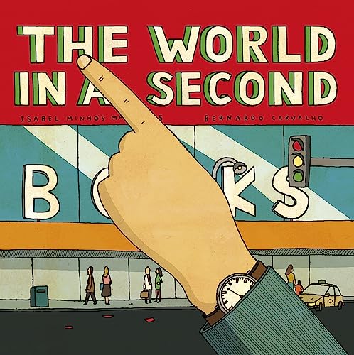 First published in 2008, this contemplative thought experiment joins recent books like Bob Graham’s The Silver Button and Clotilde Perrin’s At the Same Moment, Around the World in encouraging children to consider the many things that can occur in the space of a single moment in time. Martins, who collaborated with Carvahlo on the movement-themed Coming and Going, introduces 23 scenes in short, captionlike bursts that keep the focus on the large, richly colored images. The scenes can be mundane (“In a Portuguese orchard, a ripe orange falls”), joyful (“A wave reaches the shore” of a South African beach, dense with happy swimmers), and even unnerving: in the Italian city of Pescara, “A thief opens a door (perhaps to his own house, it’s impossible to say).” Each spread is numbered (a closing map reveals a location and timestamp for each moment), and the questions the images raise (What will become of that storm-battered ship in the Baltic Sea? Will those New Yorkers ever get out of that elevator?) will stick with readers—for longer than a second, anyway. Ages 4–8. [em](Apr.)