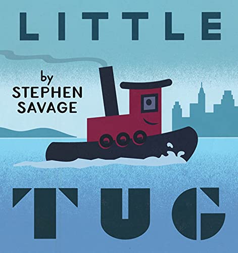 Echoes of Hardie Gramatky’s 1939 Little Toot can be seen in the pages of this tugboat tale by Savage (Where’s Walrus?). But while Gramatky’s tale chronicled a feckless junior tugboat’s relationships with the ships in New York’s waterways and concluded with his heroic redemption, Savage’s book depicts Little Tug as beloved and helpful from the start. The story has the tempo of a waltz, as readers meet three other ships (a sailboat, a speedboat, and an ocean liner), each of which get into trouble of a sort, and are rescued in turn by Little Tug. “He’s not the biggest boat in the harbor. But when the tall ship is still, and the speedboat’s motor breaks down, and the big ocean liner can’t fit into the harbor, he pulls, he pushes, and guides the boats to safety.” The crisp stencil-style art, in high-contrast industrial blue-grays with brick-red highlights and grainy shading, maintains an even keel. Savage dispenses the action in mild, reassuring doses, shifting from the tugboat’s rescue efforts to a soothing nautical bedtime. Readers who love ships can expect smooth sailing. Ages 2–6. Agent: Brenda Bowen, Sanford J. Greenburger Associates. (Oct.)