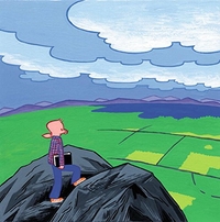 Johnny Boo creator Kochalka introduces a three-eyed, three-toothed, pink alien who sets a new intergalactic bar for nincompoopery. In the course of 20 brief chapters, the Glorkian Warrior attempts to deliver a pizza—never mind that the phone call ordering it was a wrong number (luckily, he has a leftover peanut butter and clam pizza in the fridge). The plot is driven forward by the Glorkian Warrior’s banter with his yellow Super Backpack—“Well, here we go, I guess,” says the unenthusiastic backpack as they set out. “Our stupid destiny awaits!”—and their encounters with potential foes, who often aren’t what they seem. Kochalka sets the action against swirling purple skies and a rocky multicolor landscape, and his clean, emphatic cartooning gives every pratfall, explosion, and head-butt maximum impact. Eventually, the story meanders back to where it started, leading Super Backpack to wonder, “Does that mean this whole adventure was for nothing?” From a plot perspective, yes, but fans of Kochalka’s brand of absurdity (or who want to watch the Glorkian Warrior punch himself in the face a lot) will still have reason to tune in. Ages 5–9. (Mar.)■