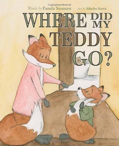 A young fox and its mother move through a conventional bedtime routine while searching for the youth’s missing stuffy, who remains one step ahead of them. At each stage, the kit poses the question, “Mama, where did my Teddy go?” Rhyming replies from Simmons present minor variations (“My child, my love,/ I do not know”), leading into further place-based queries: “Is Teddy with/ Sir Rubber Duck?// There’s no one here;/ we’re out of luck.” Washed in soothing shades, Burris’s flat, thin-lined art tracks the foxes as they move through the home, just barely missing Teddy at each stop. Meanwhile, light seek-and-find components invite readers to spot the stuffed animal as it eyes the pair from behind a pillow or around a corner. Naturally, the trio’s game of hide-and-seek concludes when everyone has reached the child’s bed, the interactivity having offered readers a wind-down tool, too. Ages 2–6. (Mar.)
