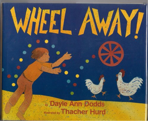 A bicycle wheel rolls away, pa-da-rump, pa-da-rump, pa-da-rump-pump-pump, in a rhymed text with a simple theme. It bounces, rolls and leaps through each spread, offering noisy rhymes in the background. The wheel goes ``Between the pig pens (oink oink oink) / On top of the hens (boink boink boink) . . . . Over paint cans (squirt squirt squirt) / Under paint man (splirt splirt splirt).'' The wheel slows as it goes up a hill, then pauses and twirls back down the path, past all the creatures and locations shown in previous spreads, until it thumps back to the bicycle's owner. Hurd's pictures mix collage and paint, as vibrant and out of the ordinary as Dodds's sprightly text, giving the book an appealing exuberance. Toddlers and beginning readers will be delighted by the display of colors and written approximation of sounds. Ages 3-6. (Mar.)