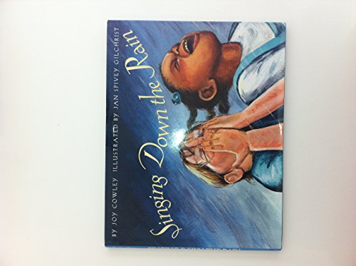 Cowley's (Gracias, the Thanksgiving Turkey) narrative voice and Gilchrist's (Madelia, above) sun-touched faces are the high points of this picture book about the power of community and faith. A blue pickup truck enters young Brianna's town during a heat spell that has ""gone on so long/ that good and kind neighbors/ were getting real scritchy with each other."" Out jumps ""a fine small woman/ with bangles on her arms,/ painted parrots in her ears,/ and a smile so big,/ it used most of her face."" The woman announces that she ""felt a praying and a needing"" as she rode past and that she ""specializes in rainsongs."" At first, everyone laughs when she asks them to join her in singing and dancing--""Oo-sha-la! Bo-ba-lo-lee!"" Then one by one, led by the children, the entire town begins ""dancing wet to the skin, face up,/ drinking all that mighty good rain"" and only Brianna notices the mysterious woman driving off. Gilchrist's country scenes and characters can be a bit static and inconsistent, but at times her multiracial cast of children lights up the page with their rapt expressions. Cowley's chanting narrative fairly sings, and by packing her storytelling with homespun images and repetitive phrases, she makes her fanciful tale almost believable. Ages 5-9. (Oct.)