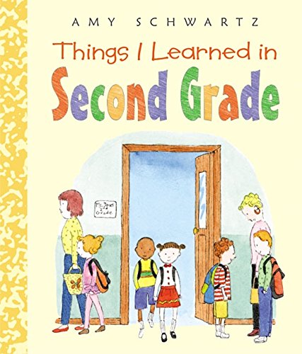 ) slow-moving, almost elegiac prose, Andrew considers all he had yet to learn before he entered Ms. Jones's class ("I couldn't subtract 348 from 411./ I couldn't write in cursive"), observes his new status as the owner of a prolific pet ("Would anyone like a hamster?," he asks his classmates on Pet Day), offers drawings and poems he's proud of ("Moths dream about sweaters/ Z dreams about becoming A…") and ponders questions to which he still does not know the answers ("How do you draw a lion walking?/ How do his legs go?"). He concludes with a quiet yet joyous catalogue of second-grade accomplishments ("I was mayor of the class./ I resolved conflicts"). Schwartz draws a warm web of relationships around Andrew, as when he recalls, in a dreamy flashback—tinted in pale blue—a time his sitter's son comforted him when no one else could: "Then Alex walked by with a cookie on his head./ I stopped crying." The modest figures, with their dot eyes and flat profiles, seem right for a document that reads a bit like a folk history. By conferring upon Andrew's experiences the dignity usually reserved for grownups, Schwartz introduces to young readers the idea that their memories are worth preserving. Ages 4-7. (July)