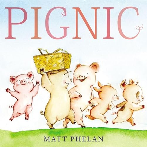 What’s the difference between a picnic and a pignic, aside from the latter’s predominance of porcine participants? With the simplest of texts and lighthearted, luminous watercolors, Phelan (What Are You Waiting For?) lets readers find parallels between their own outdoor festivities and those of his characters. Both bring out the best in everyone—the episodic structure features a handful of “uh-oh” moments, which are neatly and cheerfully resolved (a blue wolf who seems intent on eating the piglets has a change of heart and uses his huffing and puffing to help them fly a kite). The pigs wait out a sudden rainstorm in a tight, soaked huddle—a meteorologically and emotionally evocative watercolor, rendered in stormy streaks of brown and gray—and perk up when they realize that they’re left with a family-size mud puddle. “What a perfect day for a pignic!” concludes Phelan, as the happily muddied pigs head home. More than a few readers will wish that their own picnics could end in a similarly messy manner, and even more will adore the easygoing exuberance of Phelan’s story. Ages 4–8. Agent: Rebecca Sherman, Writers House. (Mar.)
