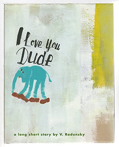 ) speaks from the point of view of "a brave young doodle named Dude." The enigmatic piece of graffiti—an improbably long-legged blue elephant wearing clunky brown shoes, with the words "I Love You Dude" lettered above it—is painted by a child on a whitewashed wall. "Nobody was happy with me," Dude says as passersby grumble about vandalism. "I was alone, ashamed, and miserable." He leaps clumsily off the wall and seeks a surface he can call home. At first he enjoys being a decal on a mug, but he gallops away when a garish woman uses the cup for scalding coffee. He contemplates becoming a tattoo on a sunbather's ponderous belly, but decides "it was not the life for me—always hiding under shirts, rarely seeing human faces... no." After real circus elephants tease him, Dude flops listlessly onto the sidewalk ("People walked over me without even noticing"). Radunsky tells the story in flat mixed-media collages that suggest carelessly painted public walls and cheap wheat-pasted flyers. He places the endearingly awkward Dude at the mercy of a clownish, Fellini-esque public. Finally, an outsider-art connoisseur recognizes a certain spontaneity in Dude's improvised line, but by then, readers of this garrulous "long short story" may have grown impatient. For all his sentimental yearning, Dude remains a two-dimensional elephant. All ages. (Oct.)